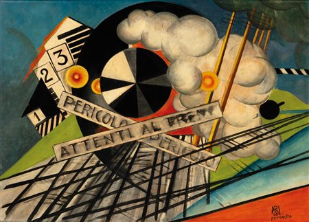 Il dipinto dal titolo Passaggio a livello, firmato "ARI 933 FUTURISTA"