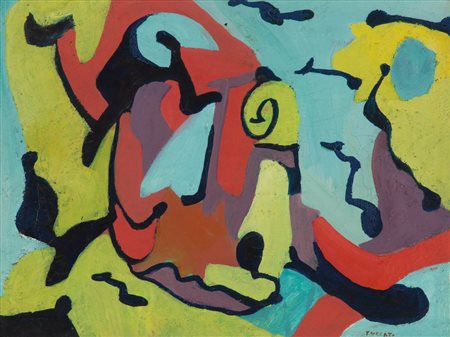 Lotto 12 Giulio Turcato (Mantua/Mantova 1912 - Rom/Roma 1995) Composizione astratta, 1953;Olio su tela, 30 x 40 cm, al retro etichetta Mostra "Selezione