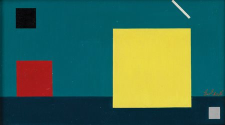 Lotto 13 Atanasio Soldati (Parma 1896 - 1953) Composizione, 1936;Olio su cartone, 16,8 x 30,6 cm, al retro etichette "Galleria