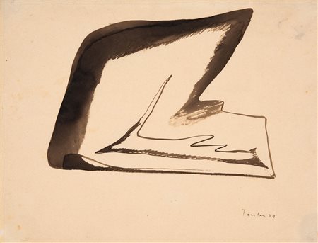 Lotto 14 Lucio Fontana (Rosario 1899 - Comabbio 1968) Studio per scultura, 1946;Inchiostro su carta, 30 x 22 cm