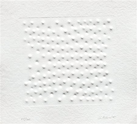 Lotto 17 Enrico Castellani (Castelmassa 1930 - Celleno 2017) Tre Superfici, 1995;Impressione a secco su carta Sicars Aci Bonaccorsi (Catania): 28,5 × 35,5 cm