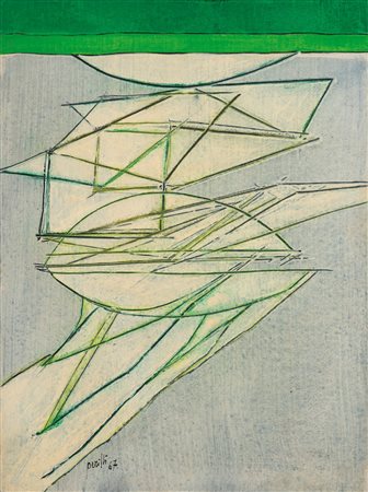 Lotto 22 Achille Perilli (Roma 1927 - Ciconia 2021) Vagoverde, 1968;Tecnica mista su tela, 40 x 30 cm