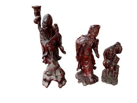 Lotto 7 Insieme di sette personaggi ed animali dalla tradizione dell'estremo Oriente. Scultura in forma di tre personaggi, tre animali ed un ananas. Dimensioni diverse (6 x 6 cm). Una scultura mancante di base. Arte dell'estremo Oriente, fine XIX - inizio XX secolo.
