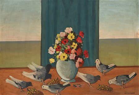 Natura morta con vaso di fiori Olio su faesite cm 71x100 - in cornice cm 94x125 Firma in basso a destra "P. Morando" -