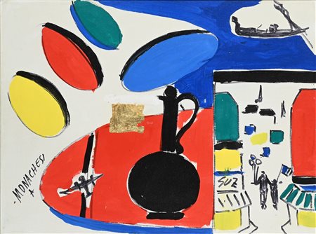 Natura Viva, Dimensione Agrà Olio e foglia d'oro su tela cm 60x80 - in cornice cm 84x103 Firma in basso a sinistra "Monachesi". Al verso titolo e firma. -