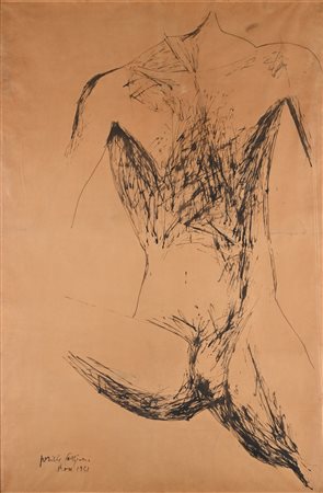 Senza titolo 1931 Inchiostro su carta cm 145x96 - in cornice cm 150x100 Firma, data e luogo in basso a sinistra "Pericle Fazzini, Roma 1931". Al verso reca etichetta della Galleria L'Isola, Roma Coll. Carla Panicali, Roma