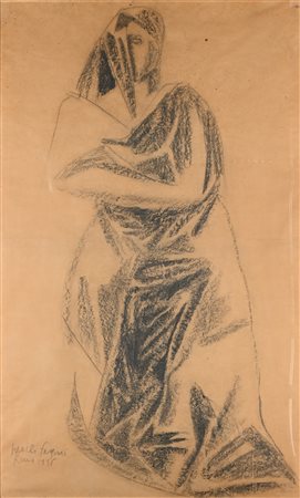 Senza titolo 1936 Carboncino su carta cm 148x90 -in cornice cm 152x94 in cornice cm Firma e data in basso a sinistra "Pericle Fazzini Roma 1936". Al verso reca etichetta della Galleria L'Isola, Roma Coll. Carla Panicali, Roma