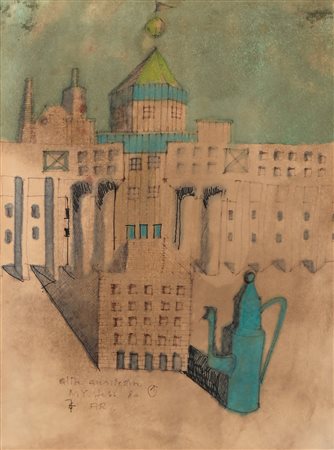 Altre architetture - progetto per il Teatro del Mondo 1980 Pennarello, china, pastelli e acquarello su carta cm 27,4x20,5 - in cornice cm 55x40
