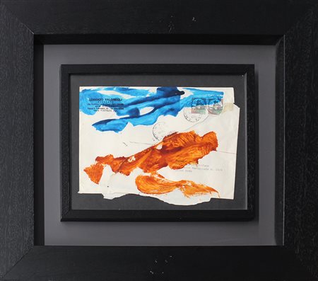 Lotto 15 MARIO SCHIFANO, (Lettera dell'avvocato), 1990-1997, smalto e tecnica mista su busta, dim 17x23,6, opera archiviata dalla Fondazione M.S. Multistudio al numero B90-97/410 in data 23 settembre 2010. Al fronte: firma al centro. Opera con cornice.