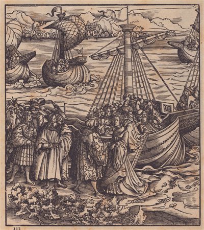 xilografia, 31 x 22,5 cm, edizione di Weisskunig del 1775, stampata su carta vergata, foglio in buone condizioni, uniformemente brunito, con lievi macchie e fioriture. Bartsch 159 -