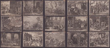 15 tavole della serie. Acquaforte, 140 x 180 mm ca. cad. Bartsch 23, 24, 28, 29, 30, 32, 33, 34, 36, 37, 40, 41, 42, 43, 47. Al verso di alcune un marchio non identificato SL.