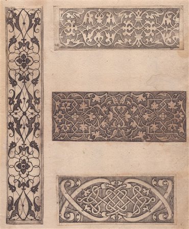 bulino, 50 x 144 mm; 55 x 148 mm; 55 x 134 mm; 42 x 240 mm; 4 impressioni controfondate su un foglio di carta vergata, buono stato