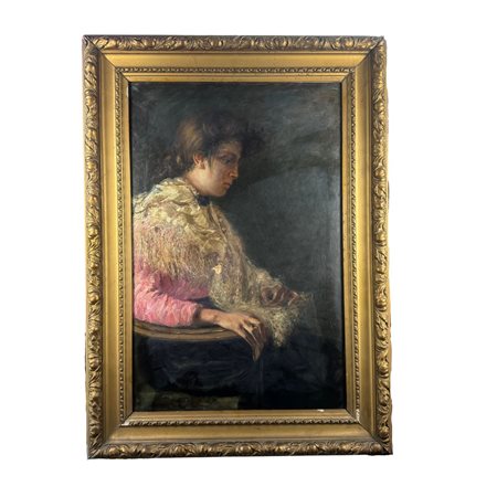 Lotto 6 Dipinto olio su tela, periodo XIX secolo, scuola Italiana raffigurante Figura Femminile.
