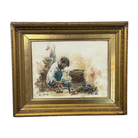 Lotto 18 Dipinto acquerello, periodo XX secolo scuola italiana, raffigurante Uomo a lavoro.