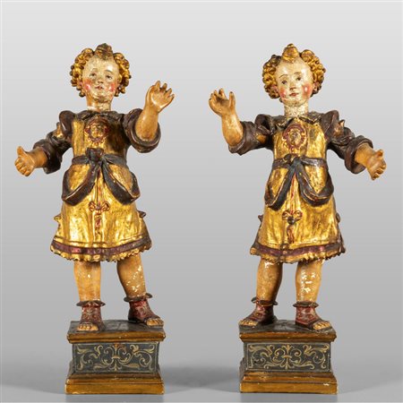 Lotto 0018 Coppia di putti in cartapesta e legno intagliato dorato e laccato in policromia Toscana fine sec.XVI