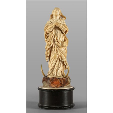 Lotto 0019 Madonnina scultura in avorio intagliato poggiante su base in legno sec.XVIII