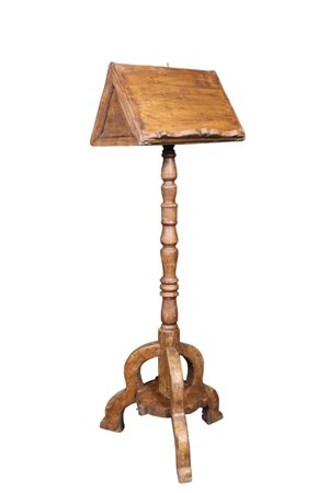 Lotto 10 LEGGIO DA TERRA in legno di noce scolpito e tornito di gusto quattrocentesco maestranze italiane XIX/ XX secolo h cm 148 x 46 x 46