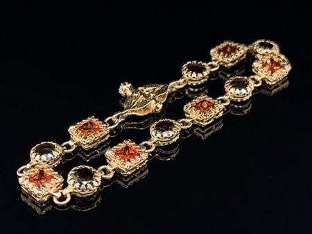 Lotto 3 BRACCIALETTO IN ORO GIALLO 14K 11.24 GR CON QUARZO CITRINO 9.00 CARATI COLORE E QUARZO SMOKY 6.00 CARATI 17CM - CERTIFICATO GEMMOLOGICO MAROZ DIAMONDS LTD MEMBRO ISRAEL DIAMOND EXCHANGE - 24K40101