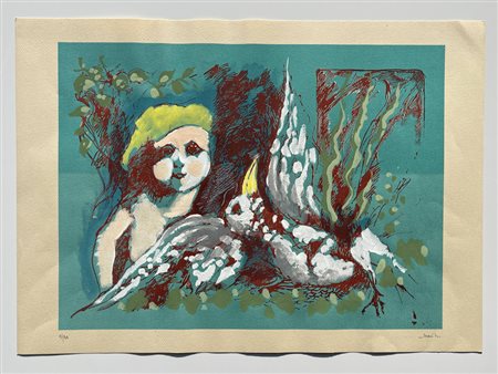 Lotto 15 Umberto Mariani Incisione acquerellata ( prova di colore) Incisione originale autentica "Del Girasole" n°1309 anno 1973