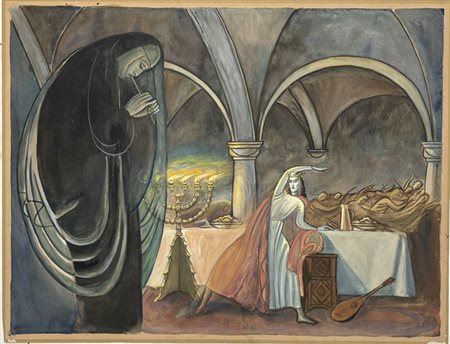 Lotto 3 Antonio Zambrini (1897-1959) Senza titolo Disegno Acquarello cm. 40x30 al netto della cornice firma a dx