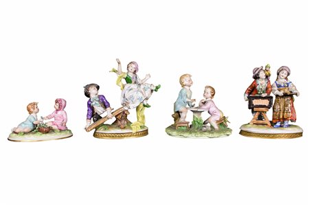 Lotto 4 LOTTO COMPOSTO DA quattro gruppi in porcellana raffigurante bambini manifattura Capodimonte XX secolo misure varie