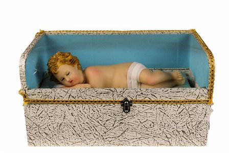 Lotto 15 BAMBINELLO in cera con automa e carillion dentro scatola Sicilia primi 900 h cm 28 / teca h cm 18,5 x 35 x 19