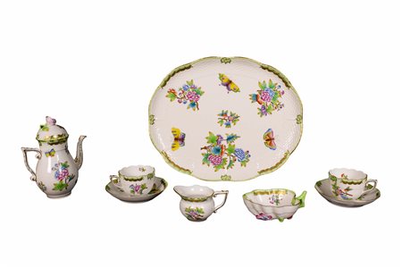 Lotto 16 SERVIZIO TETE A TETE in porcellana dipinta e lumeggiature in oro a motivi floreali manifattura Herend primi 900 misure varie