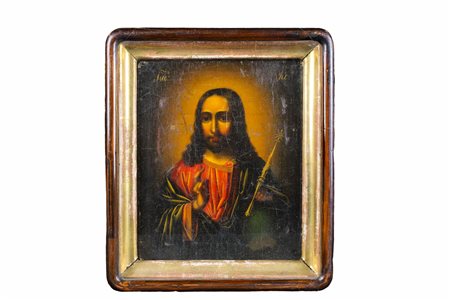 Lotto 17 ICONA in legno dipinto raffigurante Gesu' dentro cornice a teca Russia XIX secolo h cm 26,5 x 21 / h cm 33,5 x 29,5 x 7