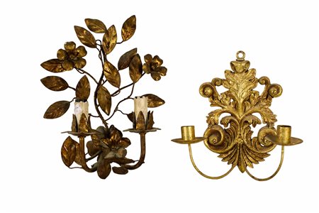 Lotto 21 QUATTRO APPLIQUES DIVERSI in legno e metallo diverse manifatture ed epoche h cm 67 / h cm 51 / h cm 33 / h cm 26