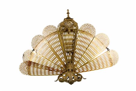 Lotto 22 PARASCINTILLE DA CAMINO in metallo dorato Francia fine 800 primi 900 h cm 60 x 84