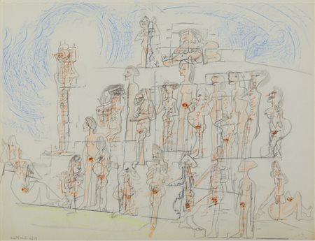 Lotto 2 MATTA ROBERTO SEBASTIAN ANTONIO (1911 - 2002) METEMPSICOSIS. grafite e matite colorate su carta. Cm 65,70 x 50,20. firma e titolo