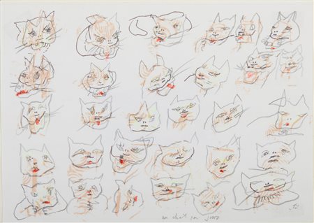 Lotto 3 MATTA ROBERTO SEBASTIAN ANTONIO (1911 - 2002) EN CHAT POUR JOUR. tecnica mista su carta applicata su cartone. Cm 32,50 x 23,00. firma e titolo