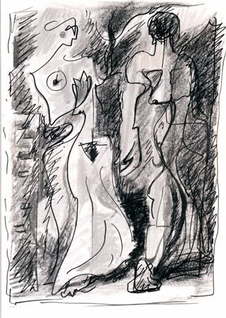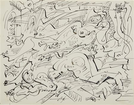 Lotto 10 MASSON ANDRE' (1896 - 1987) SENZA TITOLO (COUPLE AU CRÉPUSCULE), (1967). Tempera e pastello grasso su carta. Cm 20,00 x 26,00. L'opera è accompagnata da certificato del Comitè Andrè Masson, a cura di Diègo Masson