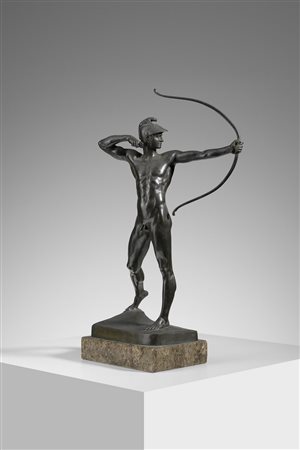 Lotto 16 GEYGER ERNST MORITZ (1861 - 1941) ARCIERE. Bronzo a patina bruna. Cm 20,00 x 37,00 x 10,00. firma alla base