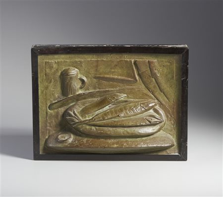Lotto 18 MARTINI ARTURO (1885 - 1947) NATURA MORTA, 1927. altorilievo, fusione in bronzo a cera persa. Cm 33,00 x 42,00. firma