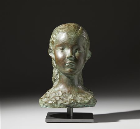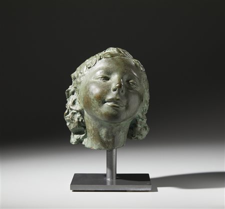 Lotto 20 CONTE CARLO (1898 - 1966) SENZA TITOLO (TESTA DI BAMBINA). Bronzo patinato. Cm 16,00 x 33,00 x 17,00. firma