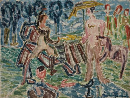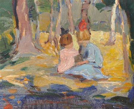 Lotto 5 Otakar Kubin (Boskovice 1893 - Marseille 1969) Due ragazze con una palla, 1903;Olio su cartone, 23 x 28 cm, in cornice