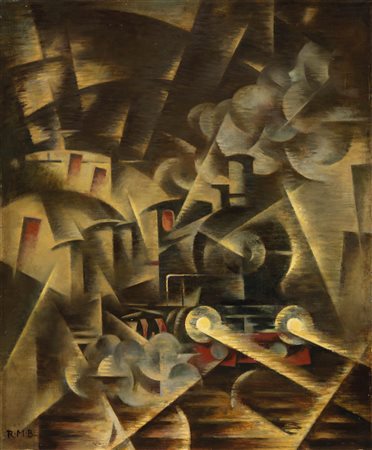 Lotto 8 Roberto Marcello Baldessari (Innsbruck 1894 - Rom/Roma 1965) IL treno in stazione, 1921 circa;Olio su tavola, 60 x 50 cm