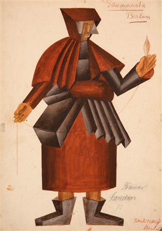 Lotto 11 Pavel Fyodorovich Tchelitchew (Dubrovka 1898 - Grottaferrata 1957) Contadino, 1922/1923 ca.;Gouache su carta, 50,7 x 36,2 cm,