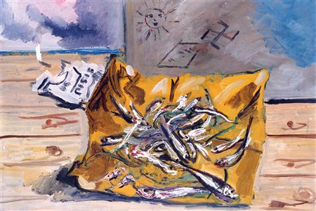 Lotto 13 Filippo De Pisis (Ferrara 1896 - Mailand/Milano 1956) Natura morta con aringhe, Anni ‘30;Olio su cartone, 49 x 71 cm
