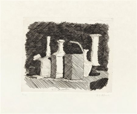 Firma e data in lastra in basso al centro: Morandi 1930; firma a matita sul margine in basso a destra: Morandi, tiratura in basso a sinistra: 28/30.