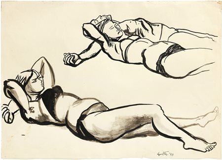 Dedica e firma in basso a destra: A Noel / con amicizia / Renato / Guttuso; firma, data e luogo al verso sulla tela: Guttuso '60 / Roma.