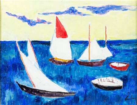 Barche E Vele 1992 Olio Su Tela cm 35x45 - con cornice cm 59x58,5