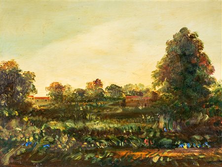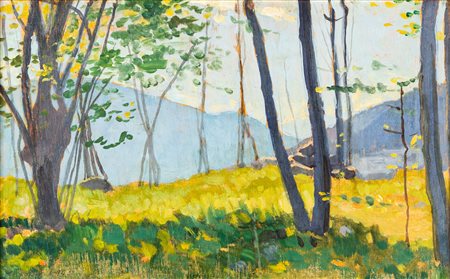 Ai Margini Del Bosco 1943 Olio Su Tavola cm 25x40 - con cornice cm 49x64 Sigla e data in basso a sinistra "L.D. 943". Al verso reca certificato di autenticità della casa d'aste Meeting Art Certificato di autenticità rilasciato dall'Archivio Dudreville a cura della Galleria Antologia, Monza