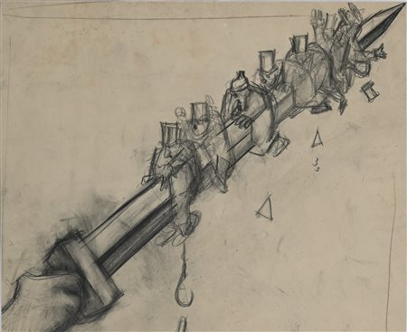 Studio per illustrazione, probabilmente per "Il Popolo d'Italia" 1922 circa Matita e matita grassa su carta cm 33x40,2- in cornice cm 58x65 Autentica rilasciata dall'Associazione per il Patrocinio e la Promozione della Figura e dell'Opera di Mario Sironi