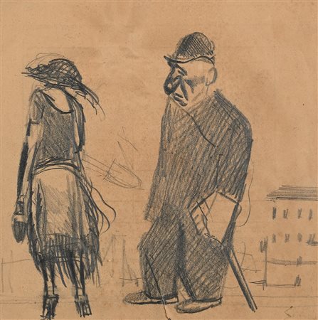 Studio per illustrazione 1921 circa Matita grassa e matita su carta cm 21,3x21,1 - in cornice cm 45x37,5 Firma in basso a destra "Sironi" apocrifa, quasi sicuramente apposta da Matilde Fabbrini Sironi. Al verso reca etichetta della Galleria La Lanterna, Trieste Autentica rilasciata dall'Associazione per il Patrocinio e la Promozione della Figura e dell'Opera di Mario Sironi -