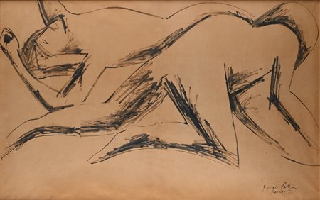 Due figure 1933 Inchiostro su carta cm 95x146 - in cornice cm 99x151 Firma e data in basso a destra "Pericle Fazzini Roma 1933". Al verso reca etichetta della Galleria L'Isola, Roma -