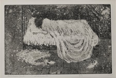 Dormiente 1961 Acquaforte/acquatinta cm 25x34,5 Firma, titolo, numerazione e data in basso a matita "Domenico Gnoli, Dormiente, 8/10, 1961"