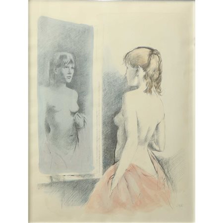 Lotto 3 Alberto Sughi (Cesena 1928-Bologna 2012) - Donna nuda allo specchio H cm 79x57 - in cornice H cm 101x79 Disegno acquerellato Firmato in basso a destra