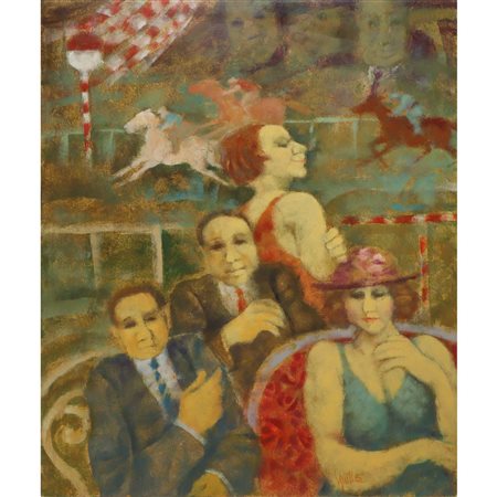 Lotto 6 Remo Squillantini (Stia 1920-Firenze 1996) - Derby cm 70x60, in cornice cm 98x88 Olio su tavola Firmato in basso a destra. Firmato e titolato sul retro. Archivio Fotografico Generale delle Opere di Remo Squillantini, Numerato F.S.C. 274.